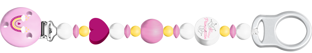 Die spielerische Bedienung des Schnullerketten-Konfigurators macht großen Spaß. Beim Umsetzen Ihrer Schnullerketten-Idee können Sie Ihrer Kreativität nämlich freien Lauf lassen. Wechseln Sie beliebig oft Motive, Farben und die Reihenfolge, bis Sie Ihre Wunsch-Schnullerkette auf dem Bildschirm erblicken.