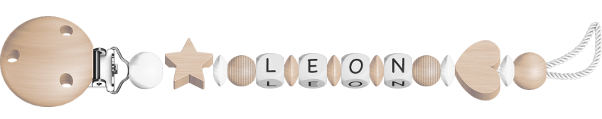 Das von uns verwendete hochwertige Bastelmaterial für Schnullerketten ist selbstverständlich zur Herstellung von Babyaccessoires geeignet. Die Holzclipse und Holzperlen bestehen aus robustem Ahornholz und stammen aus deutscher Produktion. Alle verwendeten Farben und Lacke sind schadstofffrei, ungiftig sowie speichelfest. Wir sind obendrein echte Schnullerketten-Profis und kennen alle Handgriffe, um eine qualitative Nuggikette mit Namen anzufertigen.
