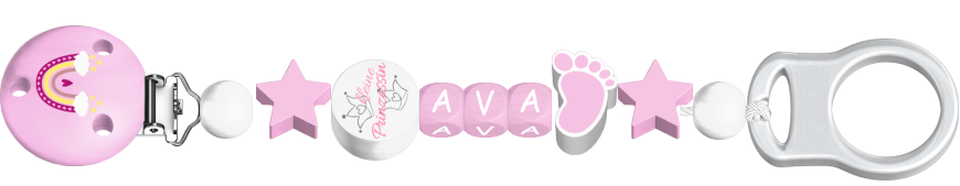 Eigens entworfene Schnullerketten mit Namen aus dem Online-Konfigurator mit künstlicher Intelligenz
